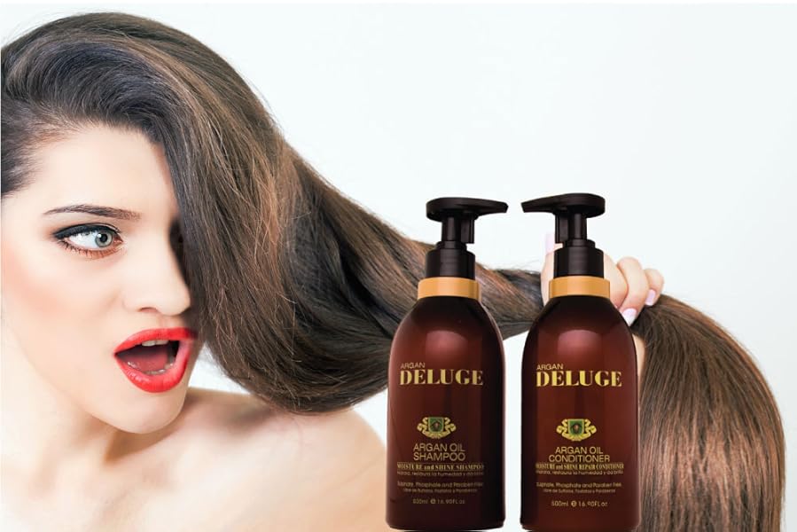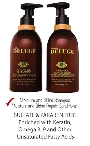 DELUGE - Moroccan Argan Oil Shampoo and Conditioner. Sulfate, Phosphate and Paraben Free. Keratin and Omega 3,6