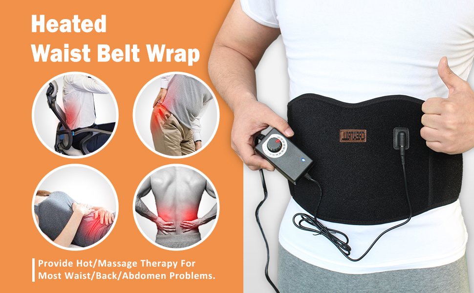 ADJUSTABLE SIZE: Adjustable wrap around waist size up to 42 inches,great for heating up to certain area as lower Back / The lower abdomen / Stomach area, etc.
