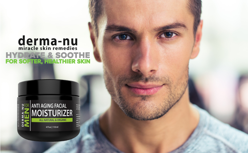 Mens Moisturizer, Aftershave Lotion & Anti Aging Cream - Prevent Post Shave Irritation + Age Defense - All Natural - Derma-nu For Men - 4oz
