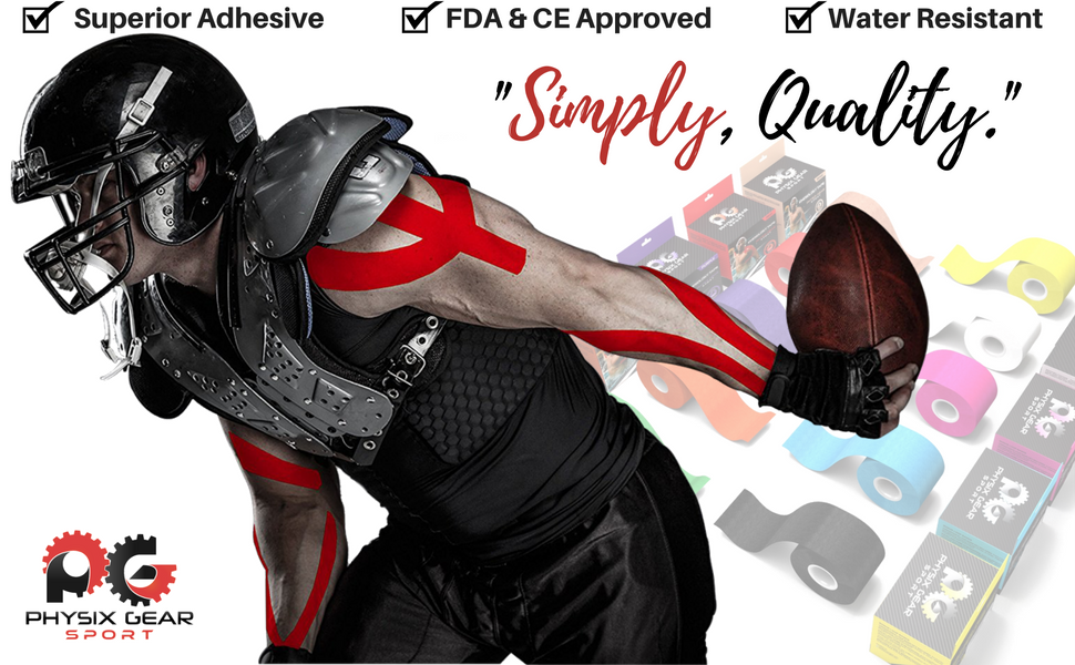 GET BACK INTO THE GAME by easily reducing chronic muscular pain conditions in joints Achilles Tendon muscles and tendons. Physix tape will be there for you during chores or a 26 mile Marathon. Avoid the frustration of cheaper tapes peeling-off. When applied using your FREE 82 page illustrated eGuide Physix Tape stay's in place no matter what even if you're soaking wet with sweat or after your post workout shower! Maintain PEACE OF MIND and safety as your Ktape works for you around the clock.
